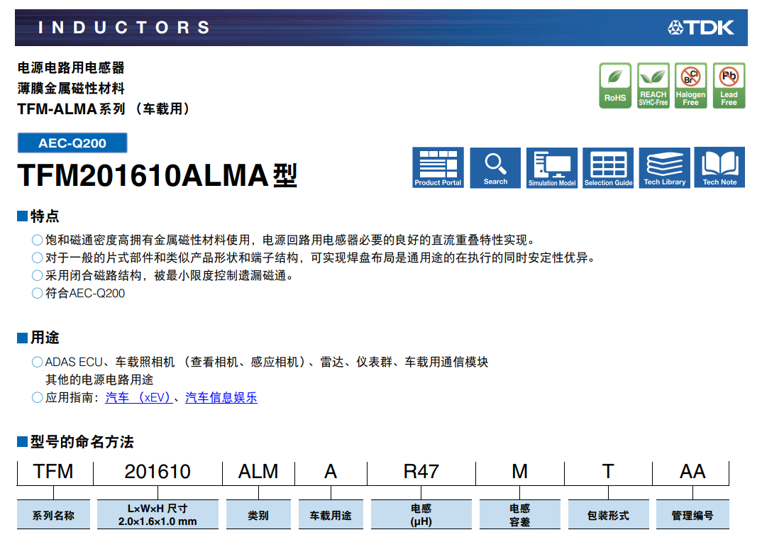 TDK電感電源電路用車載等級(jí) TFM201610ALMA