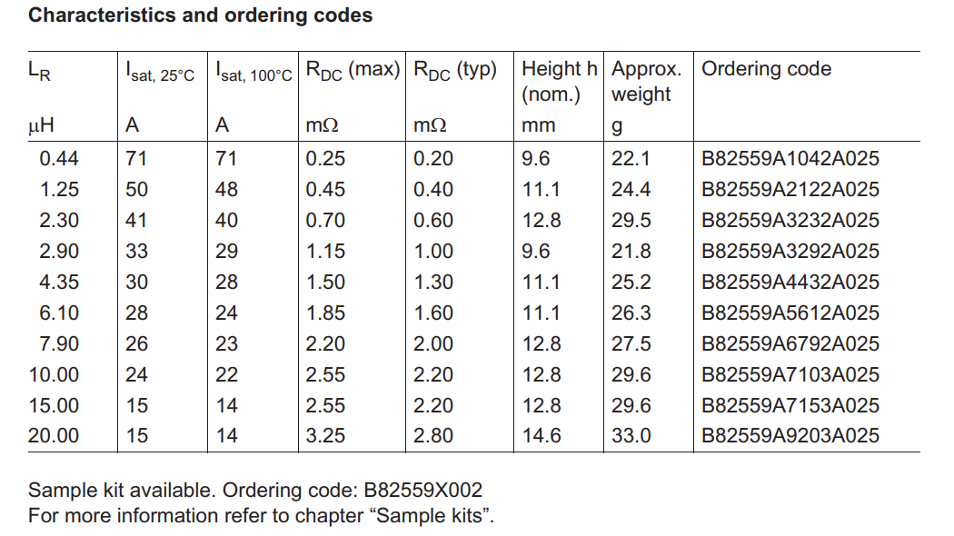 TDK電感電源電路用一般等級(jí) B82559A * A025