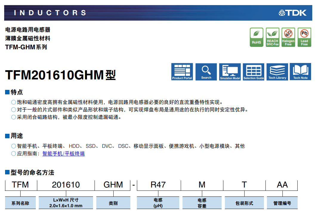 TDK電感電源電路用一般等級(jí) TFM201610GHM