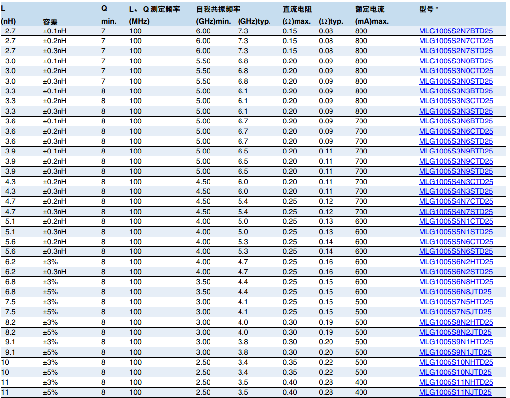 TDK電感高頻電路用車載等級(jí) MLG1005S