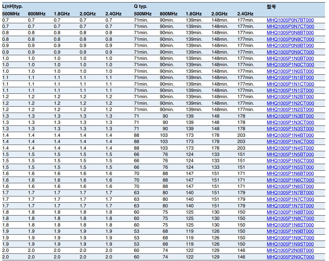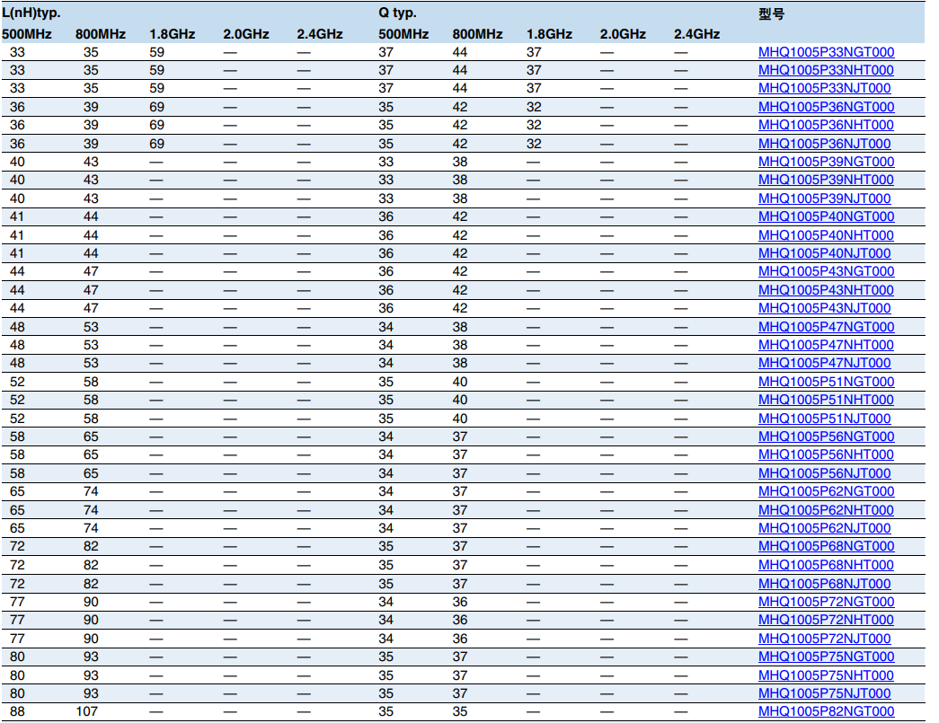 TDK電感高頻電路用一般等級(jí) MHQ1005P