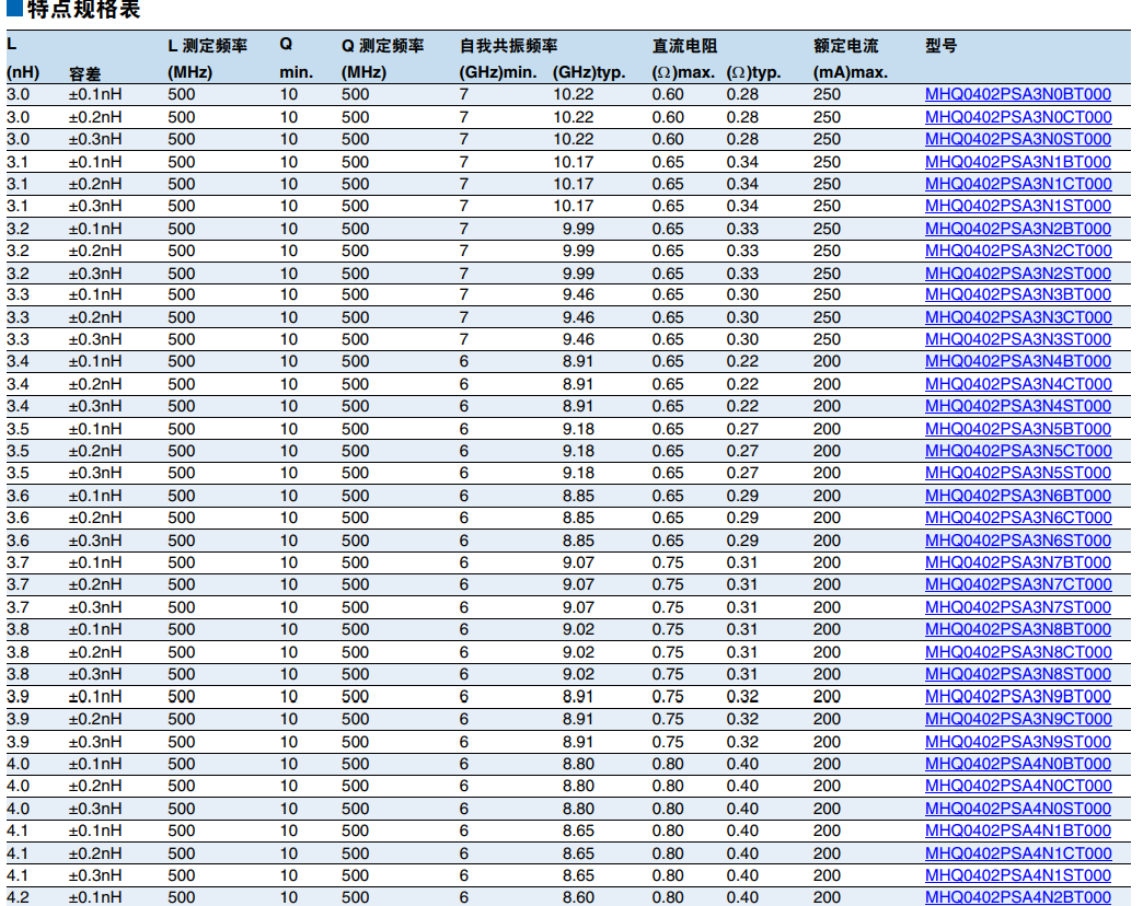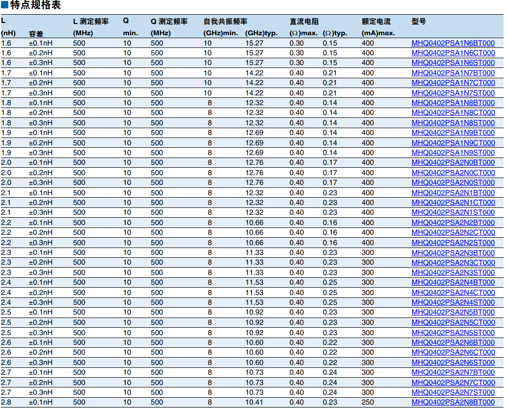 TDK電感高頻電路用一般等級(jí) MHQ0402PSA