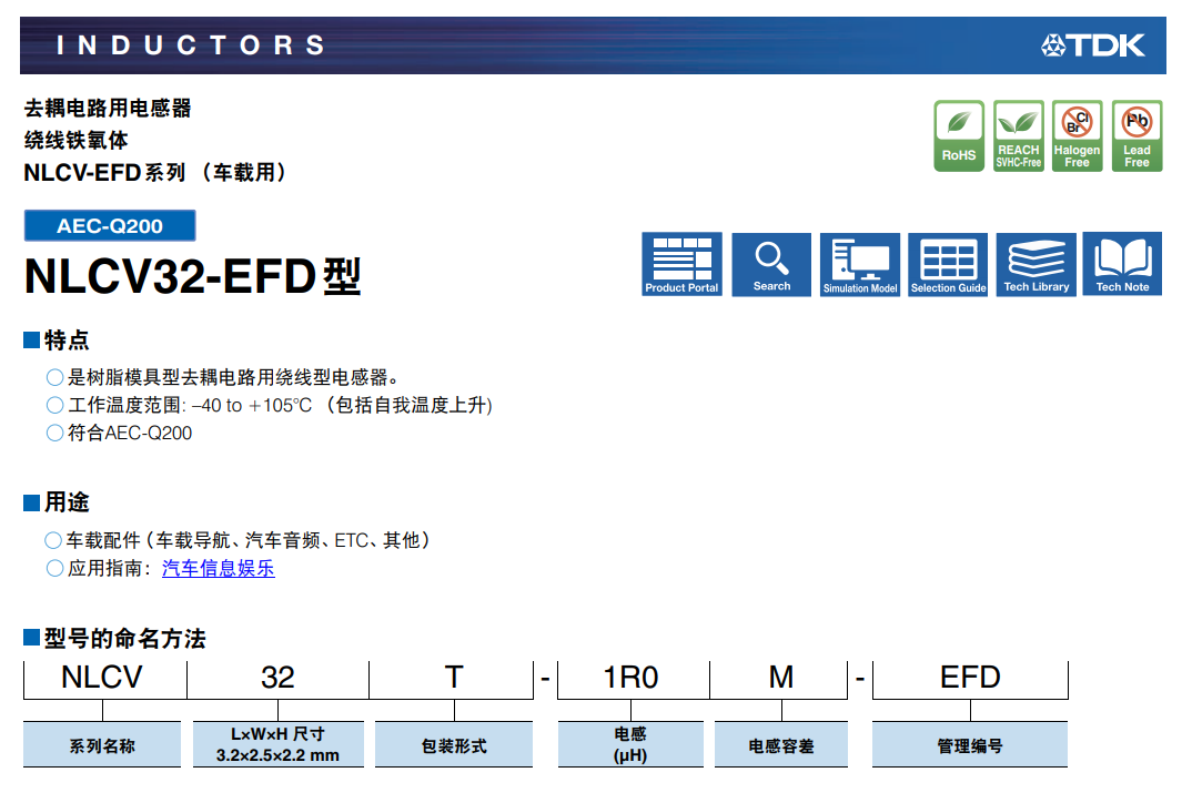TDK電感去耦電路用車(chē)載等級(jí) NLCV32-EFD