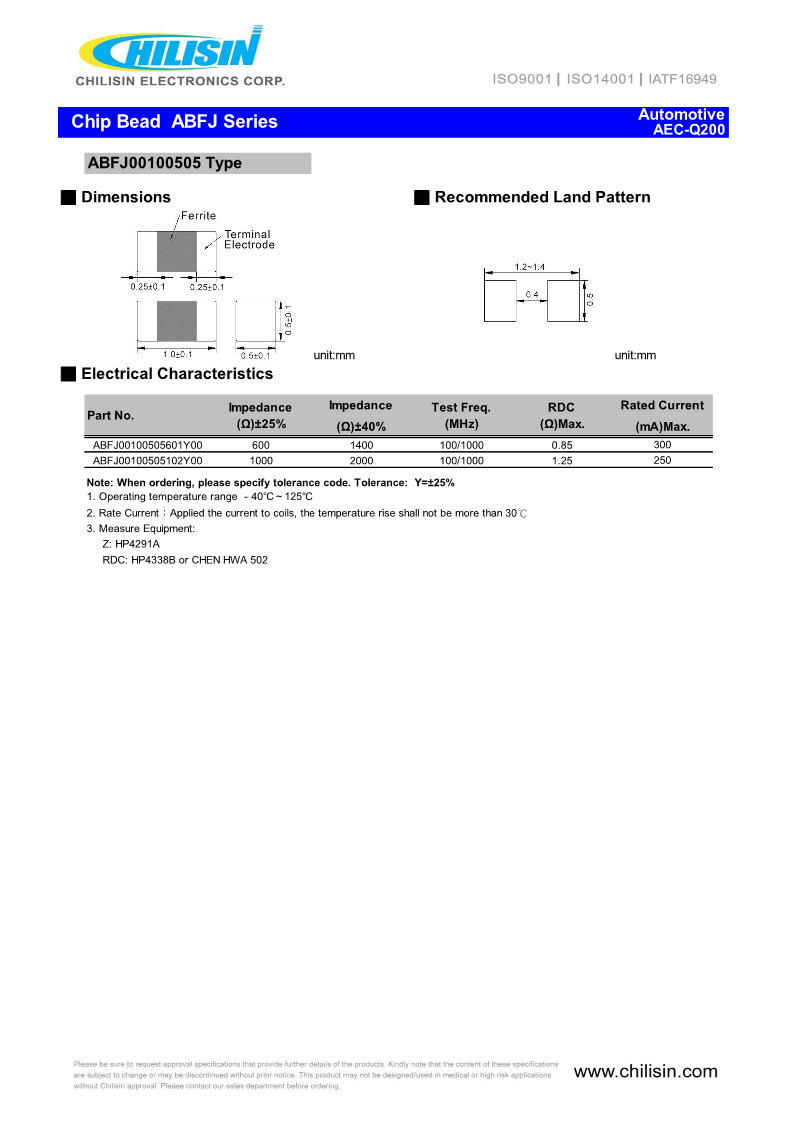 電感/磁珠奇力新chilisin 電感電磁干擾電感汽車級(jí)ABFJ_100505