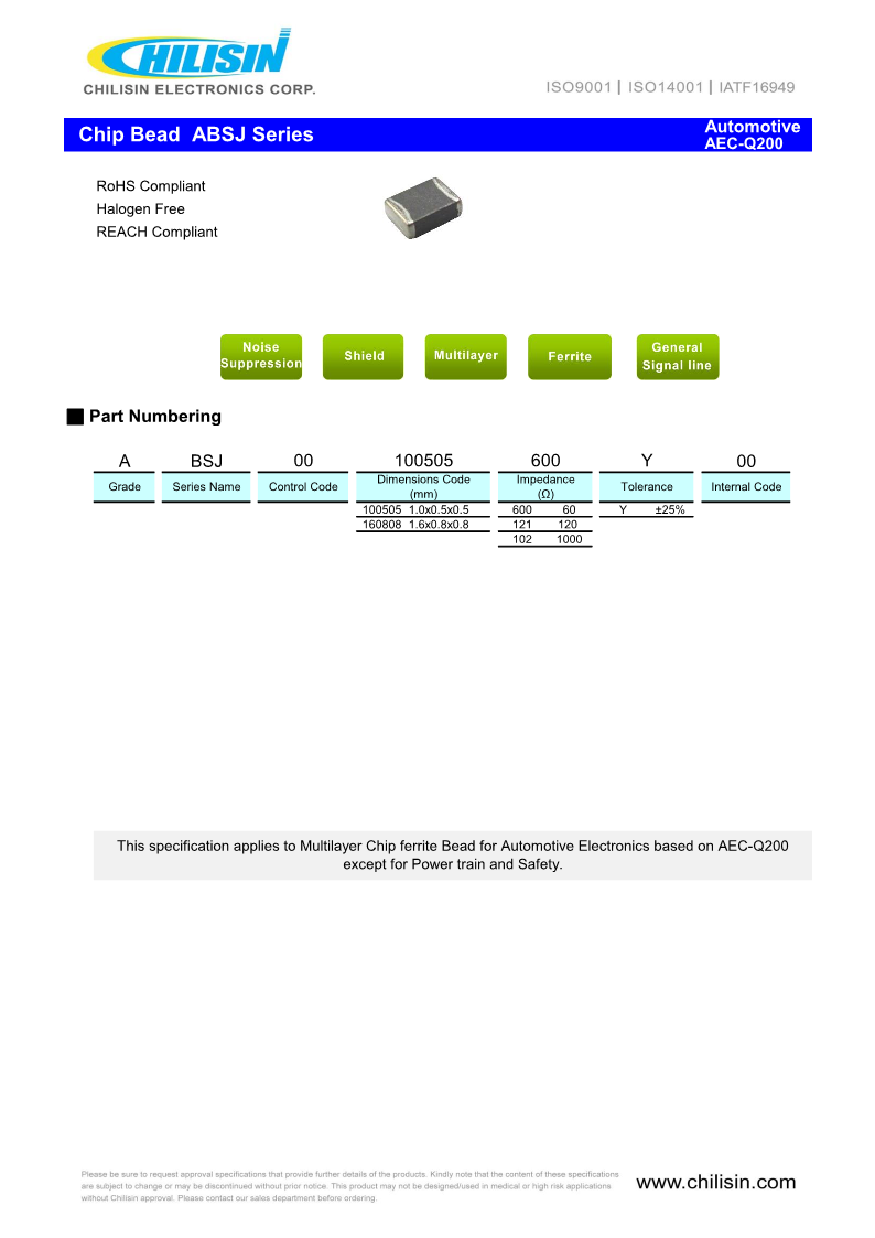 電感/磁珠奇力新chilisin 電感電磁干擾電感汽車級(jí)ABSJ_100505