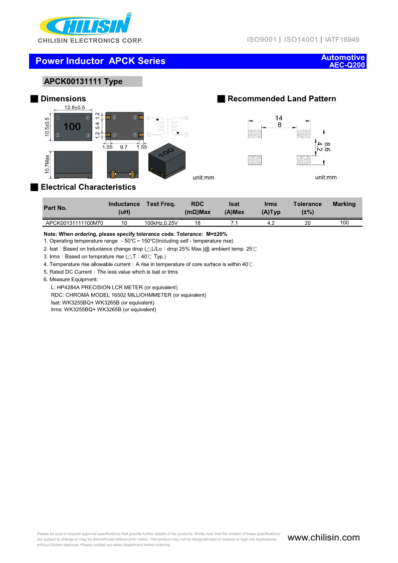電感/磁珠奇力新chilisin 電感 功率電感汽車(chē)級(jí)APCK_100910