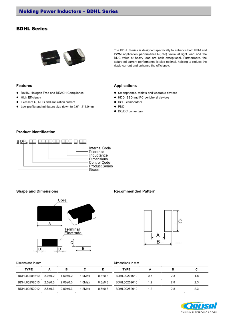 電感/磁珠奇力新chilisin 電感功率電感一般的BDHL_252010