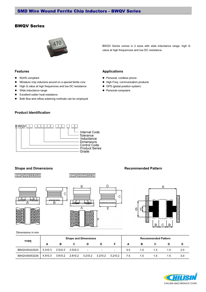 電感/磁珠奇力新chilisin 電感射頻信號電感器一般的BWQV_322520