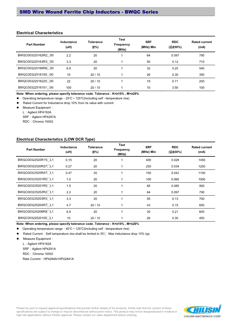 電感/磁珠奇力新chilisin 電感射頻信號電感器一般的BWQC_322516-H1