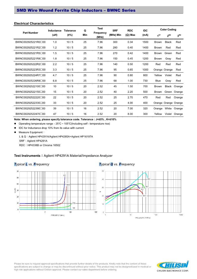 電感/磁珠奇力新chilisin 電感射頻信號電感器一般的BWNC_292522