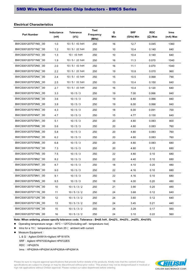 電感/磁珠奇力新chilisin 電感射頻信號電感器一般的BWCS_060404
