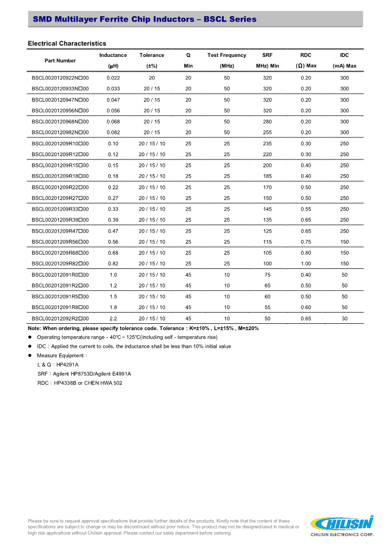 電感/磁珠奇力新chilisin 電感射頻信號電感器一般的BSCL_201212