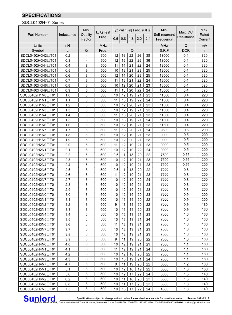 電感/磁珠順絡(luò)Sunlord 電感高頻電感多層貼片高頻電感SDCL0402H-01