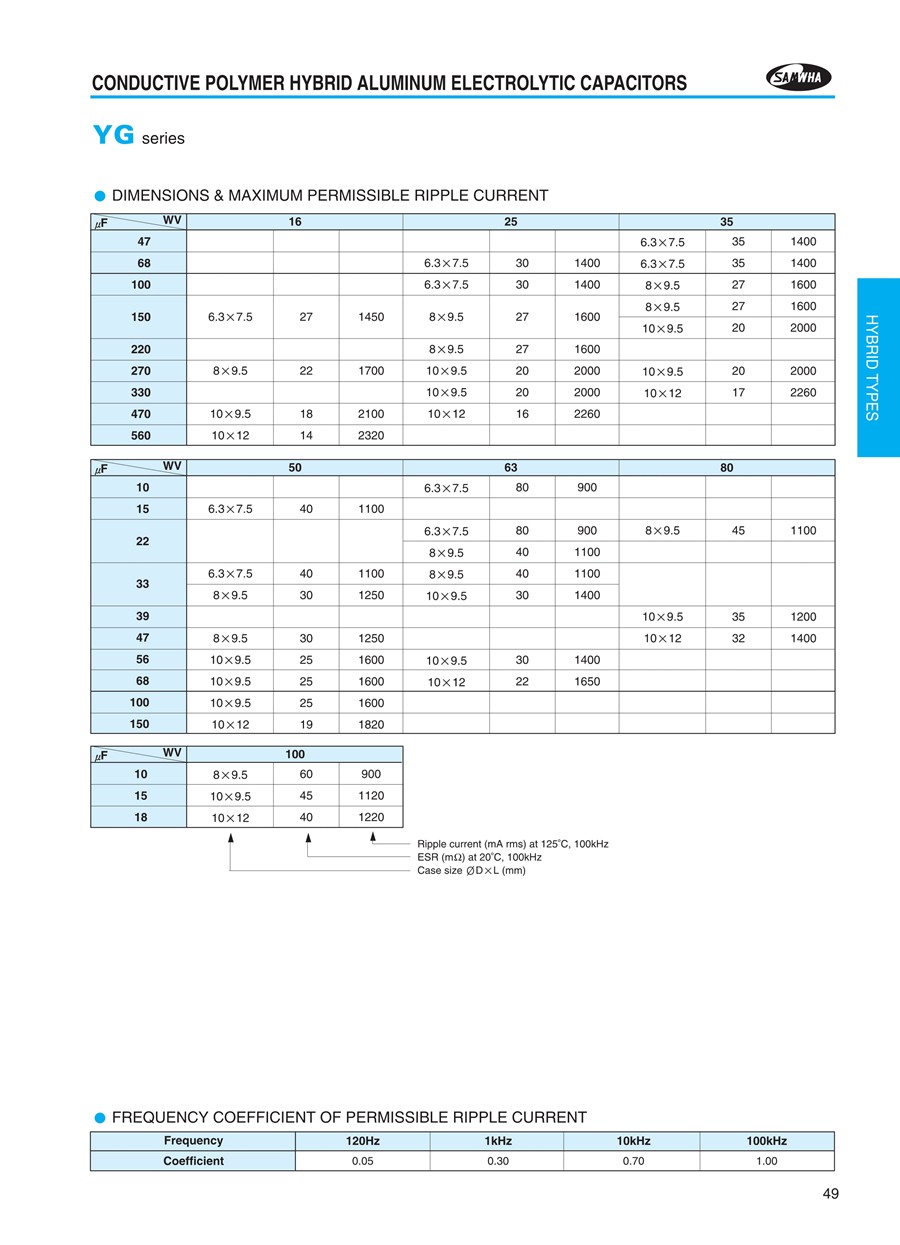 三和電容samwha導(dǎo)電性高分子混合電解電容器YG系列