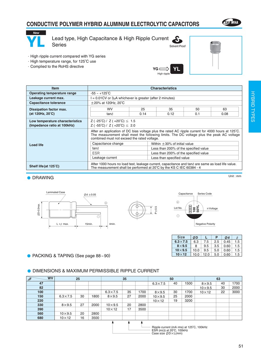 三和電容samwha導(dǎo)電性高分子混合電解電容器YL系列