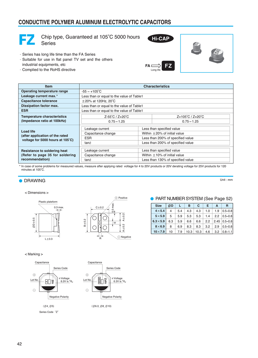 三和電容SAMWHA導電聚合物高分子電解電容FZ系列