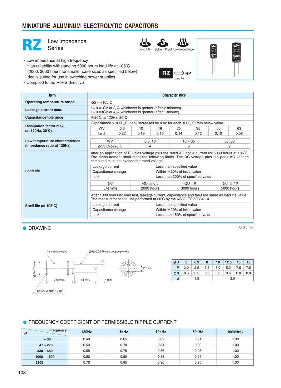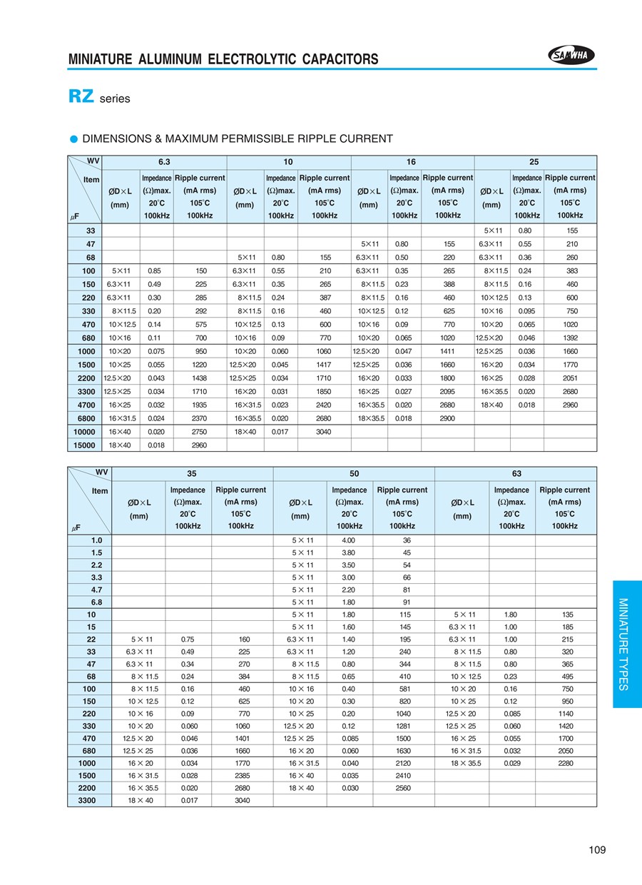 三和電容samwha小型鋁電解電容RZ系列