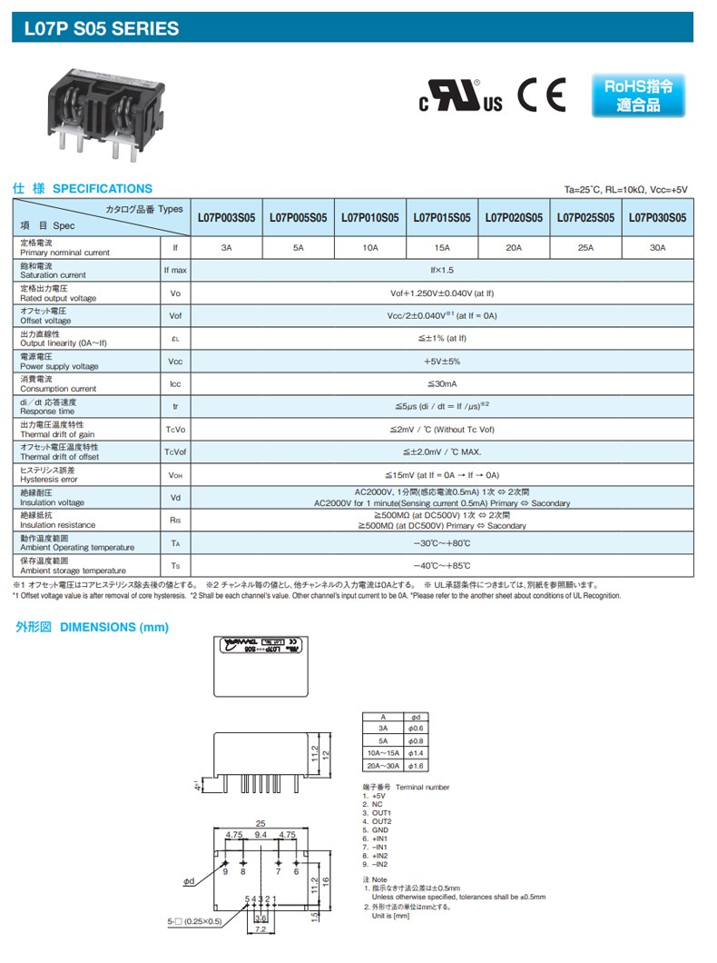 L07PxxxS05推出適用于二合一 結(jié)構(gòu)和小容量通用逆變器的理想電流傳感器