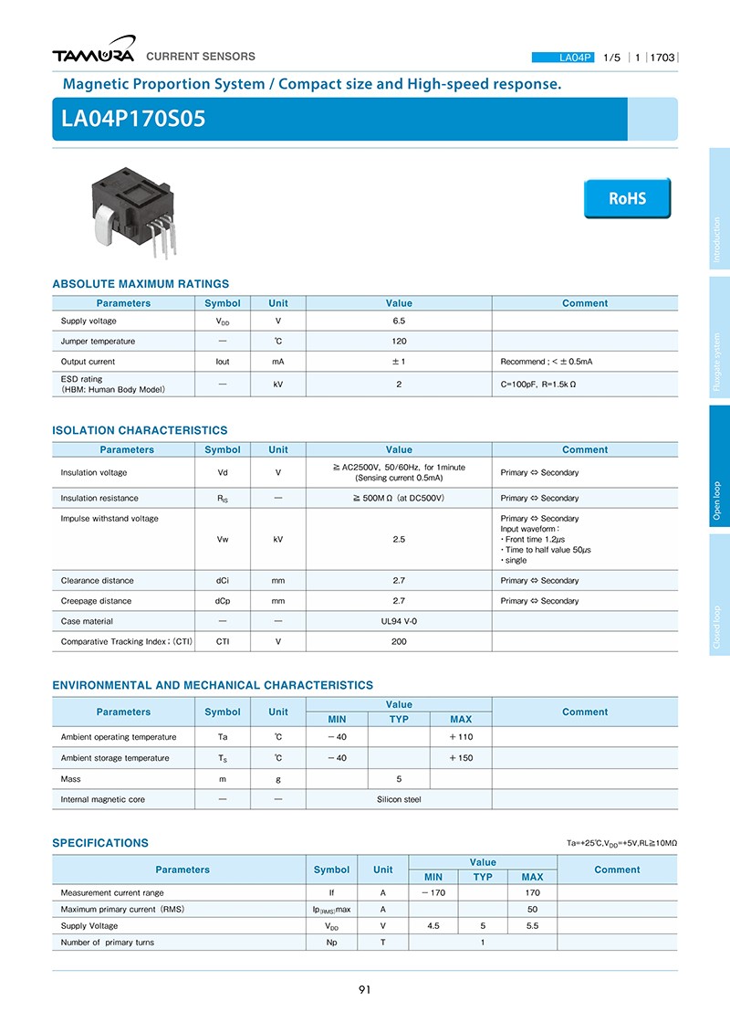 LA04P170S05小容量通用變頻器的最佳電流傳感器