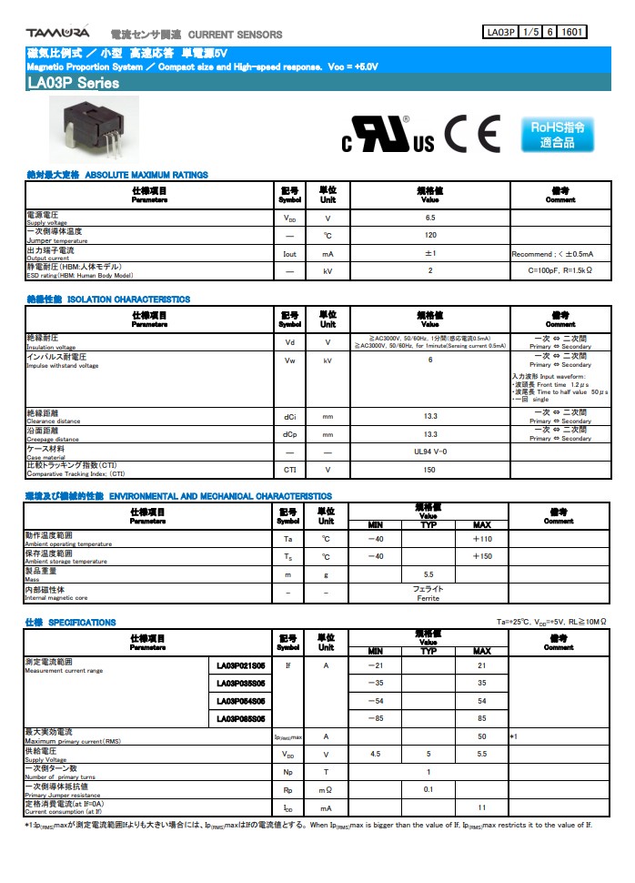 ?最大測量電流值21至85A(然而,最大有效電流50Arms)