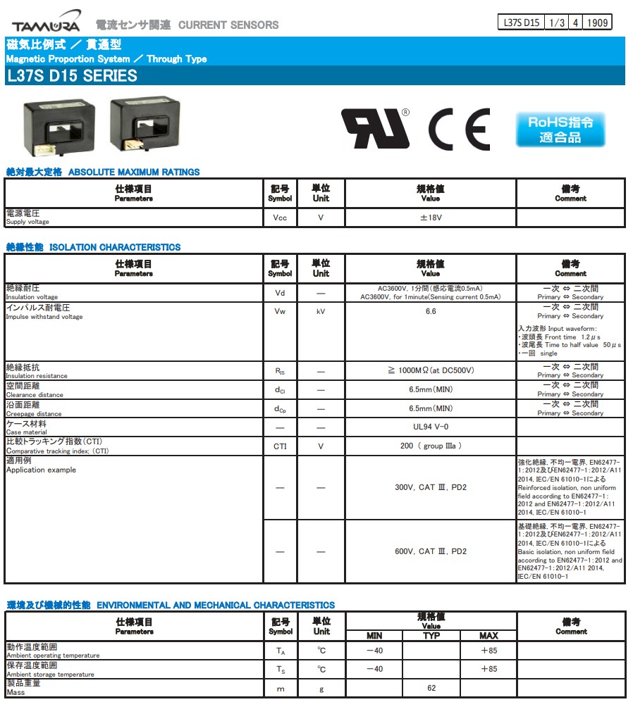 L37S D15J系列中容量通用變頻器的最佳電流傳感器