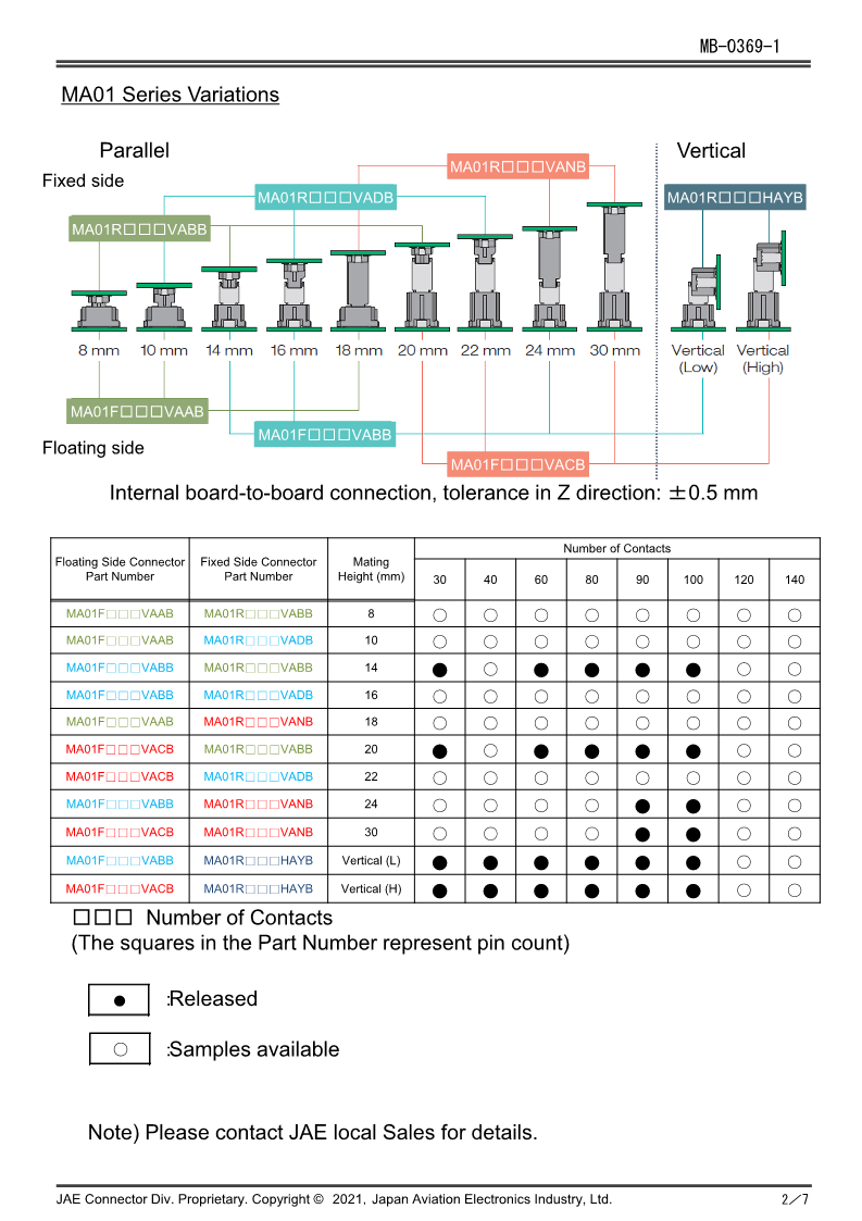系列:MA01 Series (Automotive Grade, High-speed Transmission, Floating Board-to-board Connector)