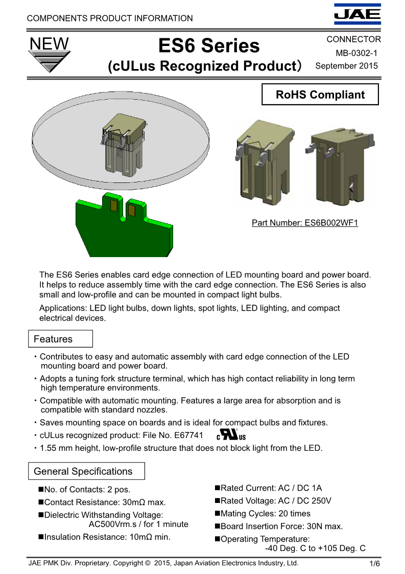 精密連接器 日本JAE連接器 板對板用連接器 直角連接 ES6 Series (LED Power Supply Card Edge Connector)