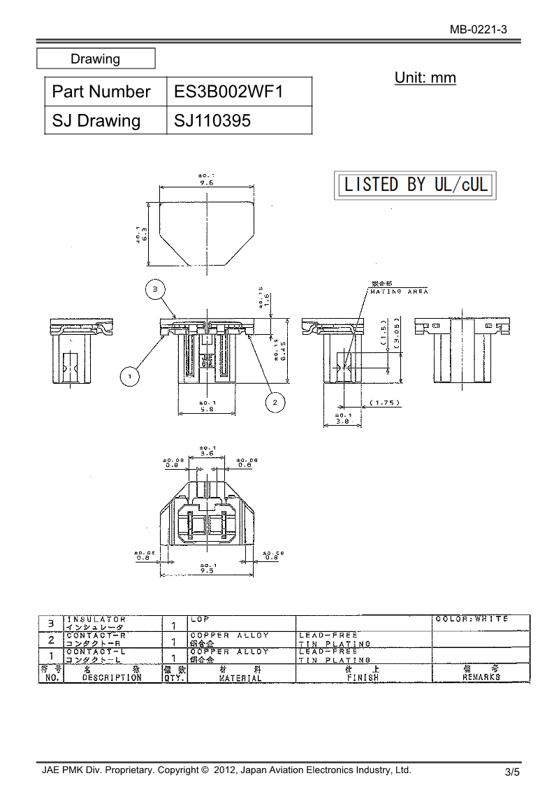 精密連接器 日本JAE連接器 板對板用連接器 直角連接 ES3 Series (LED Power Supply Card Edge Connector)