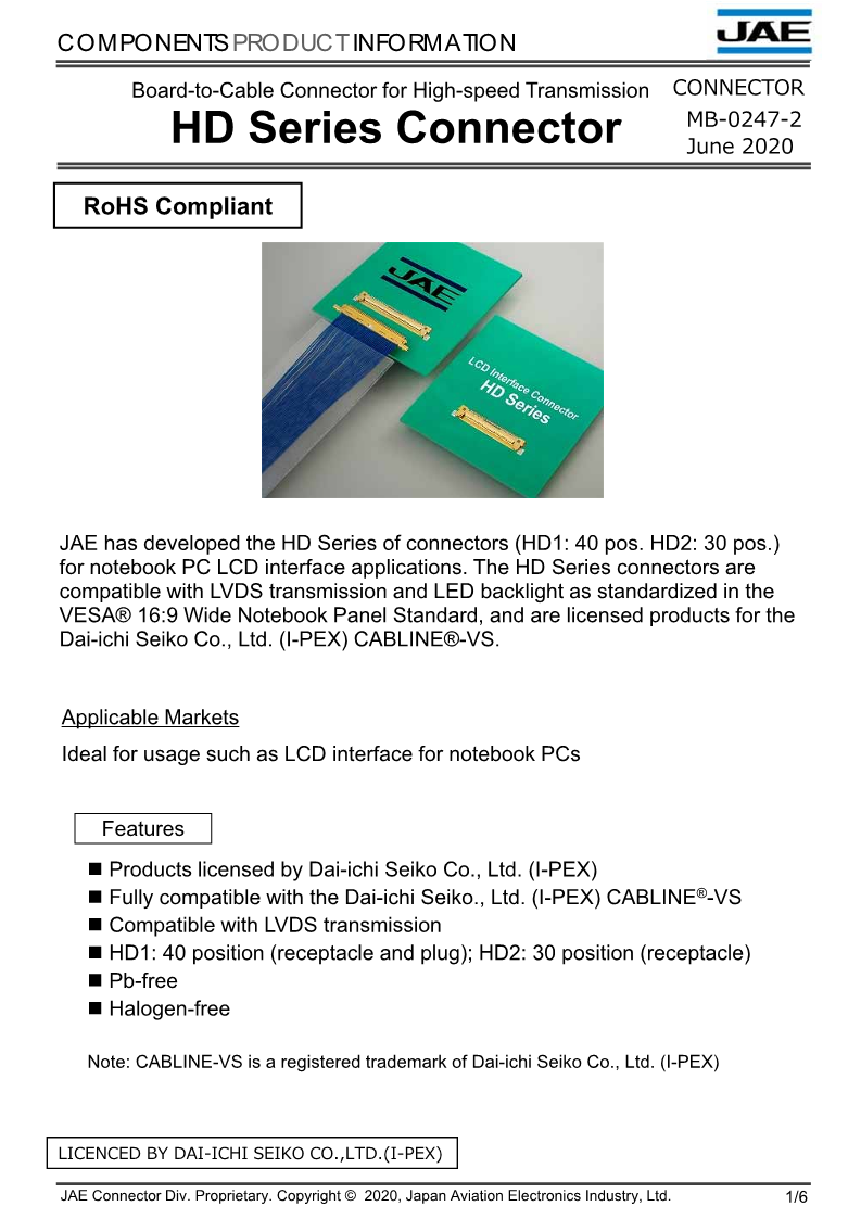 系列:HD Series Board-to-Cable Connector for High-speed Transmission