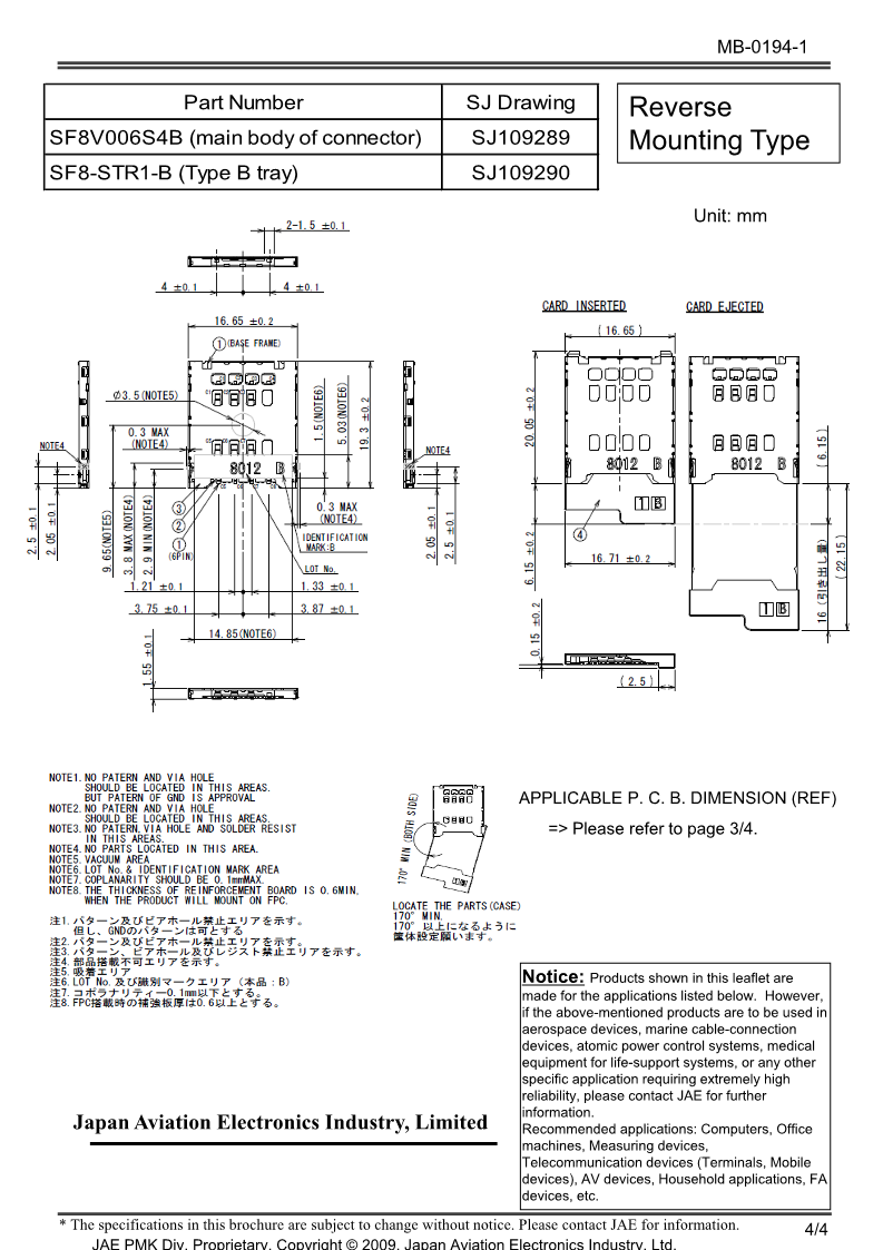 精密連接器 日本JAE連接器 記憶卡座連接器 SIM卡座 SF8 Series (GSM 11.11 Plug in SIM Card Connector)