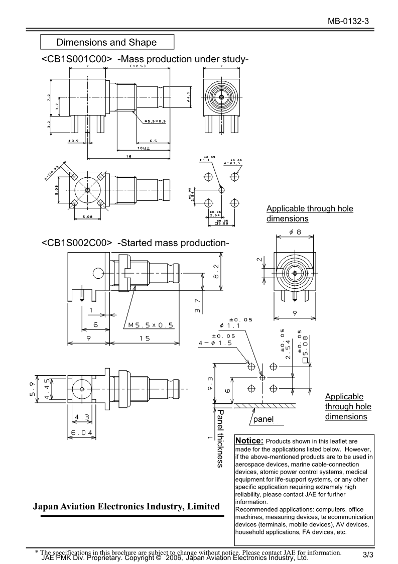 型號:CB1 Series Coaxial Connector