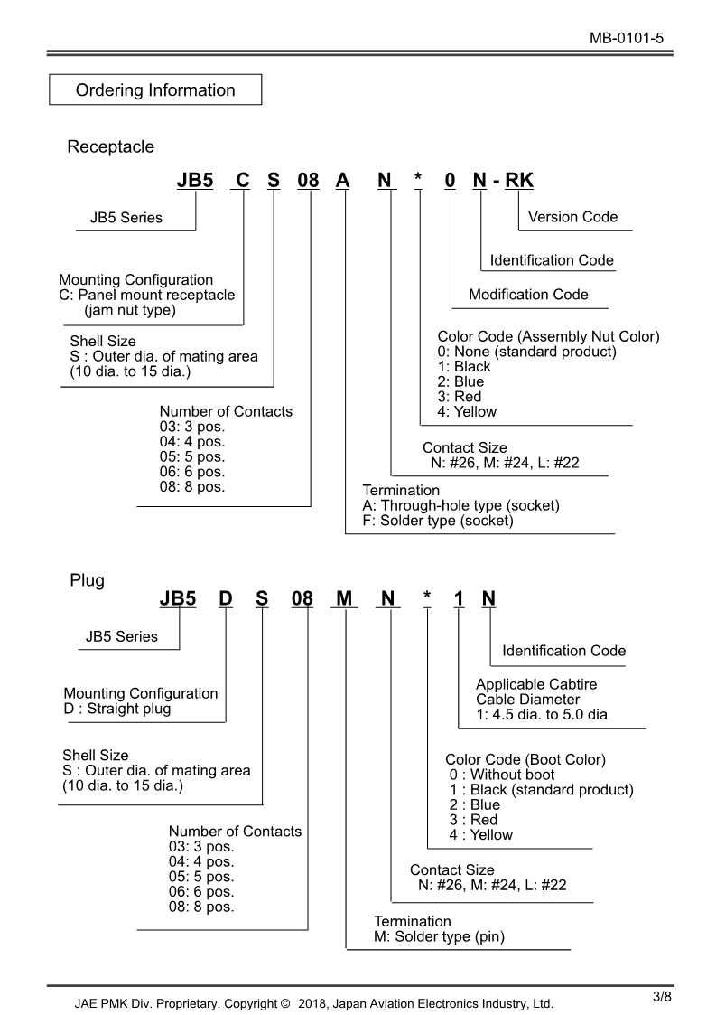精密連接器 日本JAE連接器 外部接口連接器Others JB5 Series (Small Size, Push-pull, Waterproof Circular Connector)